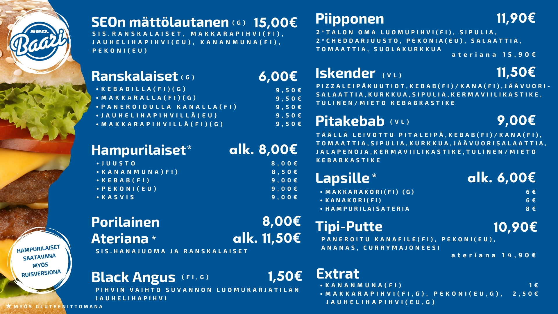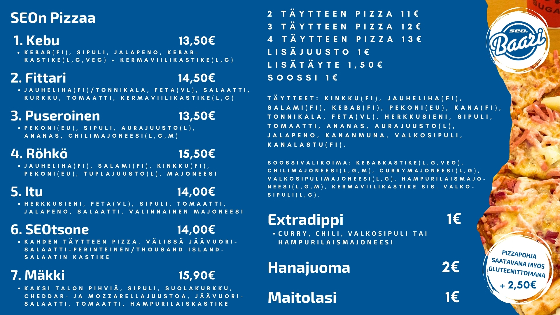 Keittiö avoinna klo 10 - 17, tilaukset klo 16.45 mennessä!